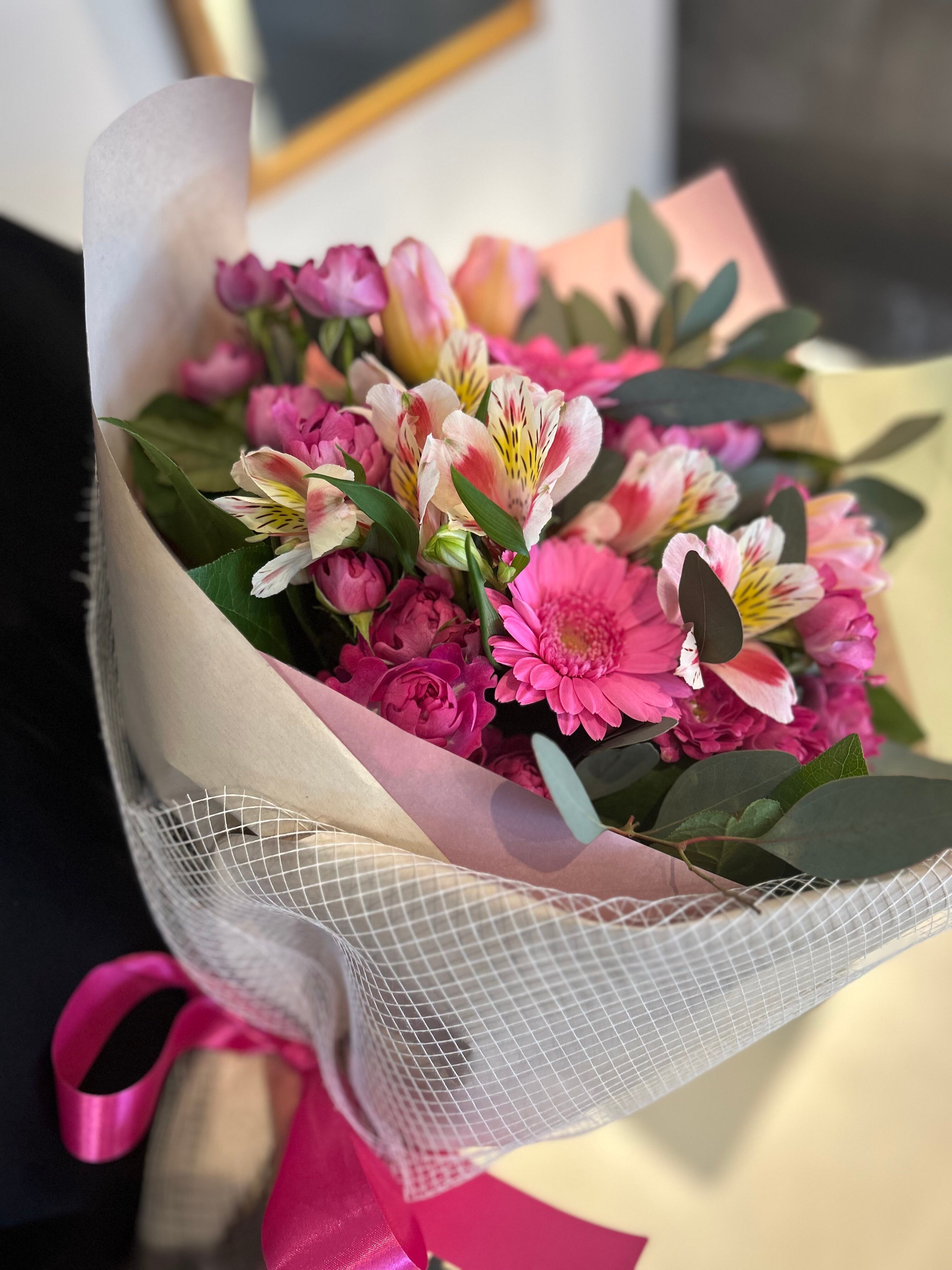 季節のお花を花束テイクアウトにいたします
