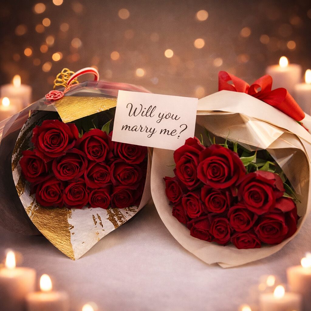 【山代温泉旅館へお届け】プロポーズ赤バラ12本ブーケ